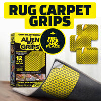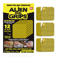 Alien Rug Grips Carpet Tape – 12pcs, 4x4 in. Reusable Double-Sided Pads for Hardwood and Tile Floors, Non-Slip Corner Rug Pads