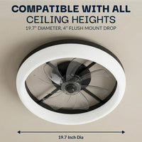 - Low-Profile Flush Mount Design: Ideal for rooms with low ceilings, this fan sits close to the ceiling while providing effective air circulation and integrated lighting in a modern fandelier style.