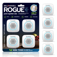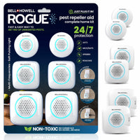 The Bell+Howell Rogue Pest Repeller Aid offers a fast, non-toxic way to clear your home of pests without the need for messy traps or dangerous poisons. This complete kit uses advanced multi-frequency ultrasonic technology and a soft pulsing light to drive out mice, rats, spiders, ants, and roaches while remaining completely safe for children and pets. Designed for 24/7 protection, these compact plug-in units provide a maintenance-free, eco-friendly solution for every room in your house, from the attic to the garage.